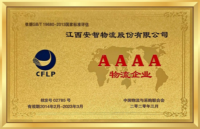 2020年3月荣获中国物流与采购联合会“AAAA”级称号