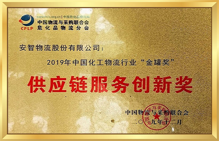 2019年12月荣获中国物流采购联合会危化品分会颁发的“供应链服务创新奖”
